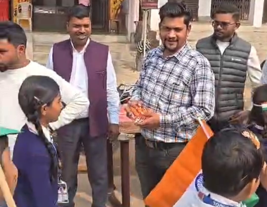 बभनी(सोनभद्र/उत्तर प्रदेश)। गणतंत्र दिवस के अवसर पर बभनी बाजार की युवा समिति ने प्रभात फेरी में शामिल स्कूली बच्चों को फ्रूटी वितरित की। इस दौरान हाली लाइट पब्लिक स्कूल और एमएसडी पब्लिक स्कूल बभनी के लगभग दो हजार बच्चों को फ्रूटी दी गई।