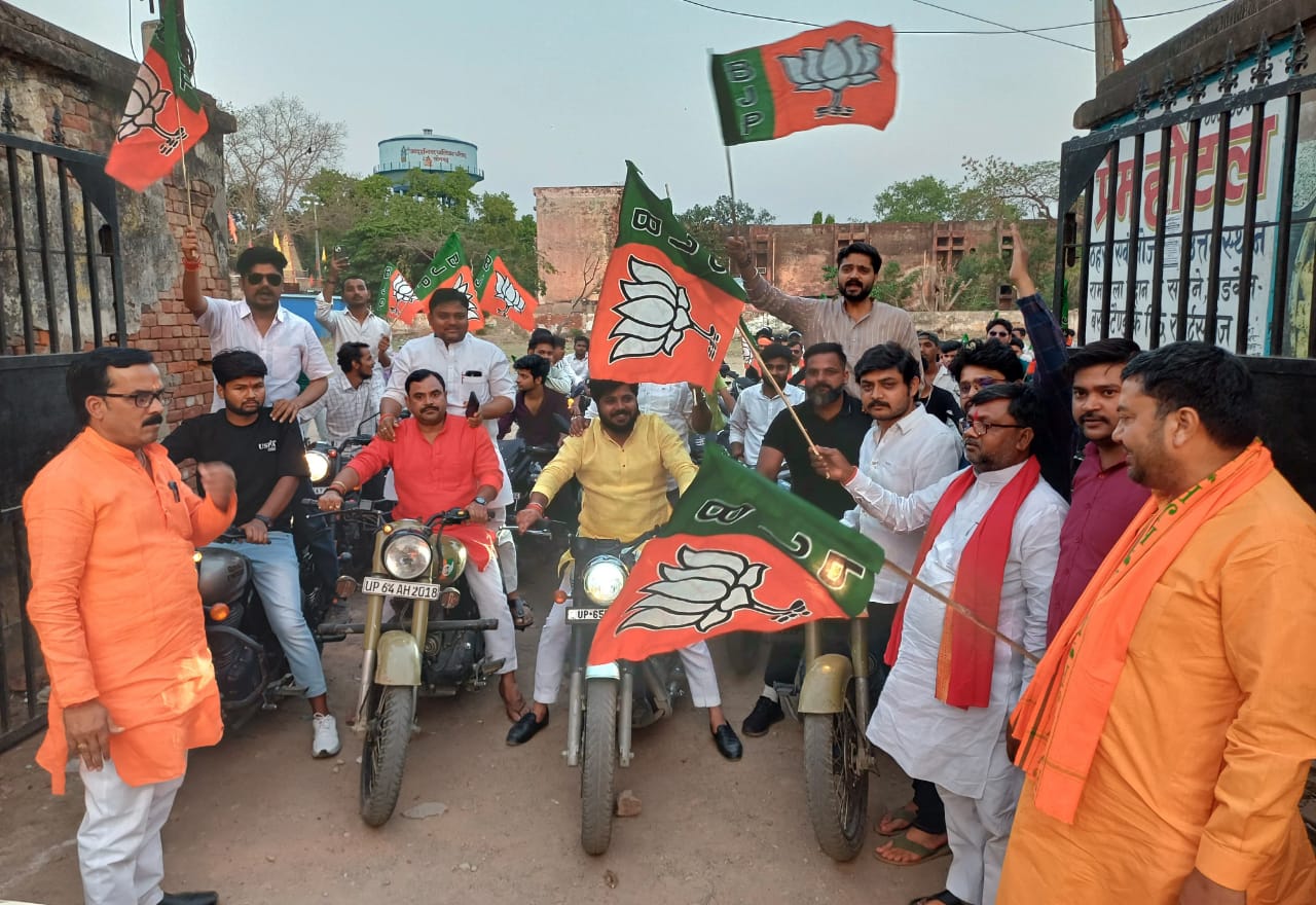 सोनभद्र(उत्तर प्रदेश)। भारतीय जनता युवा मोर्चा के तत्वाधान में निकाली गई बाइक रैली योगी सरकार के सफलतम 8 वर्ष पूर्ण होन पर विधानसभा रॉबर्ट्सगंज में युवा मोर्चा द्वारा बाइक जुलूस निकाला गया, जिसका शुभारंभ मुख्य अतिथि के रूप में उपस्थित जिला प्रभारी अनिल सिंह व जिलाध्यक्ष नंदलाल के द्वारा पार्टी का झंडा दिखा कर बाइक जुलूस को रवाना किया गया।